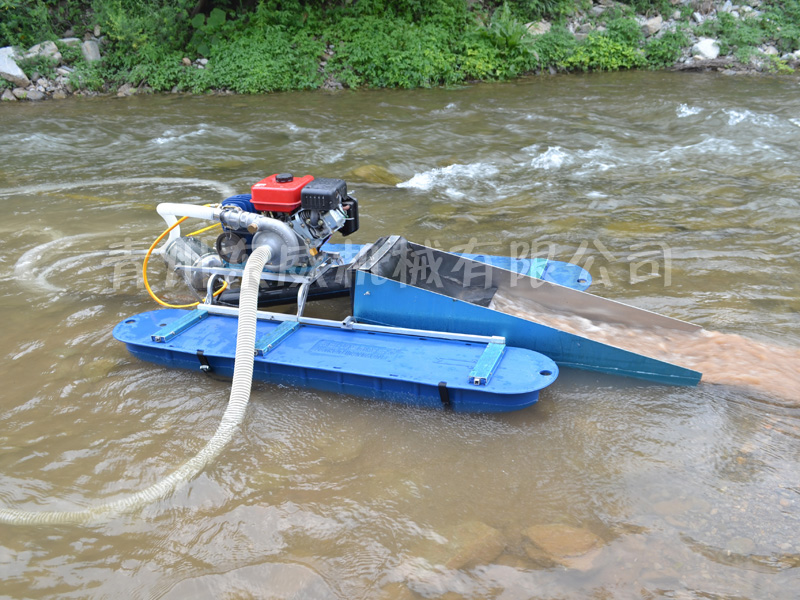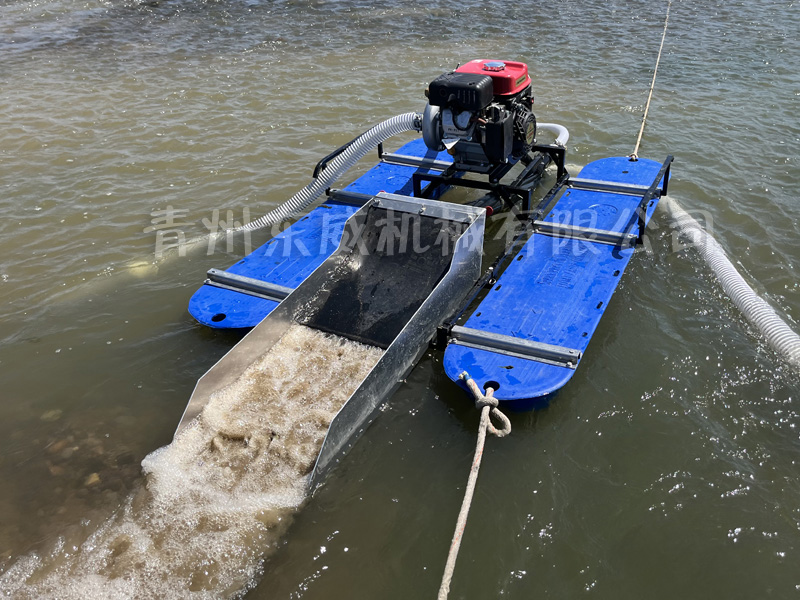 虹吸式淘金船是由機(jī)器、高壓水泵、浮體、射流嘴、管路、選礦溜槽等構(gòu)成,具有體積小、輕量化、便于拆裝運(yùn)輸?shù)忍攸c(diǎn),是沙金采選行業(yè)內(nèi)投資少、見效快的新選擇;可選裝空壓機(jī)系統(tǒng),潛入水下進(jìn)行探礦、選礦操作。