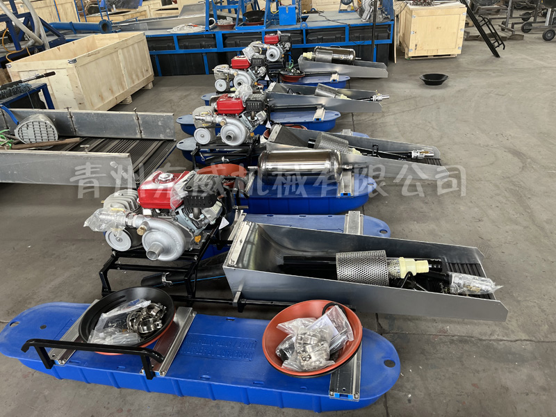 該設(shè)備抽沙系統(tǒng)采用新型結(jié)構(gòu),原料抽取過程中物料不流經(jīng)泵組,不用考慮泵和葉輪的磨損;沙金重選裝置為我公司專門研發(fā)的橡膠選金墊,沙金提取效率高,可對毛細(xì)金、片狀金進(jìn)行回收;適用于中小型礦場、河道、小溪淘金、探礦作業(yè);