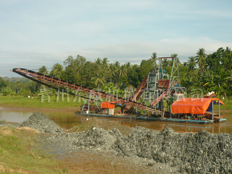 淘金船是一種集采礦作業(yè)、選礦作業(yè)為一體的水上聯(lián)合工廠,是一種砂金、鐵粉、錫礦、鎢礦等重金屬開(kāi)采設(shè)備,它包括鏈斗挖掘系統(tǒng)、選礦及供水系統(tǒng)、廢礦及尾礦排棄系統(tǒng)、甲板機(jī)械、船體、上部鋼構(gòu)、供電等幾個(gè)基本系統(tǒng)。