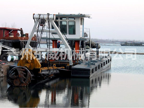 絞吸式挖沙船是目前在河道開采、清淤中運(yùn)用較廣泛的一種船舶,它是利用吸泥管前端圍繞吸泥管裝設(shè)旋轉(zhuǎn)絞刀裝置,將河底泥沙進(jìn)行切割和攪動(dòng),再經(jīng)吸泥管將絞起的泥沙物料,借助強(qiáng)大的泵力,輸送到泥沙物料堆積場,它的挖泥、運(yùn)泥、卸泥等工作過程,可以一次連續(xù)完成,它是一種效率高、成本較低的清淤工具,是良好的水下挖掘機(jī)械。